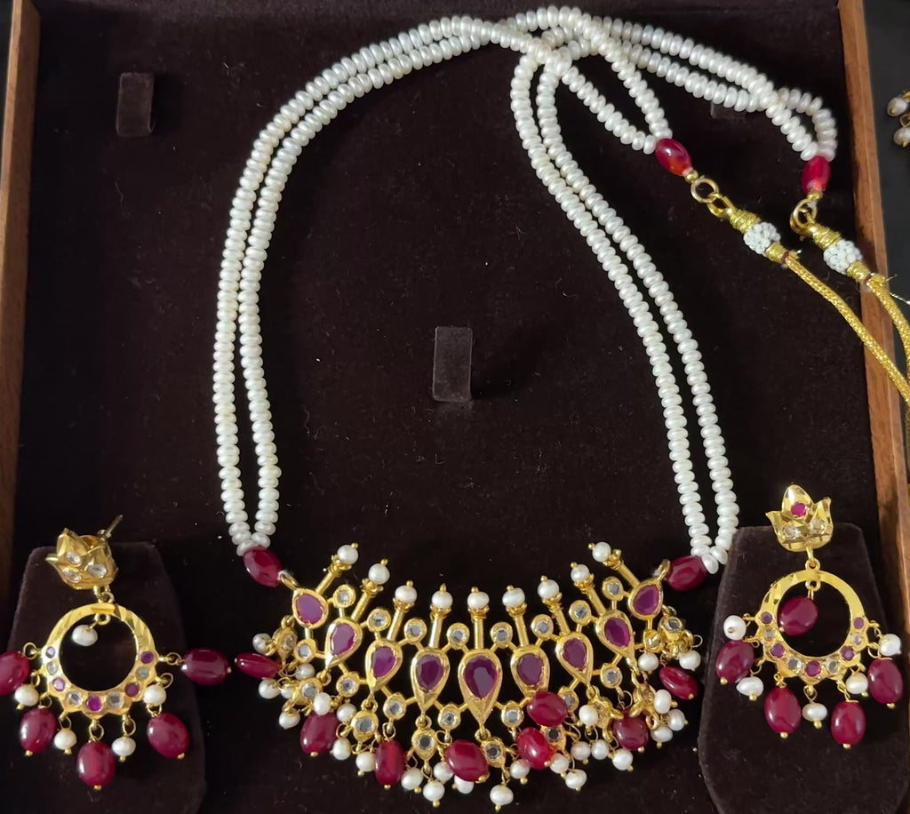 made using fresh water  pearls , cz polki with 22ct gold plating
